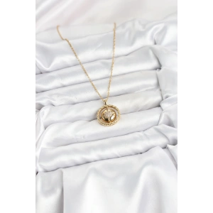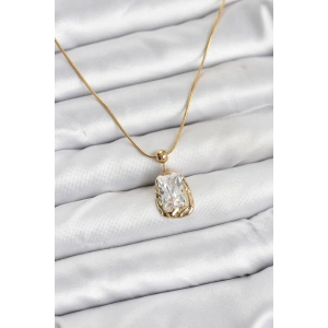 316L Çelik Zincir Gold Renk Zirkon Taşlı Kadın Kolye