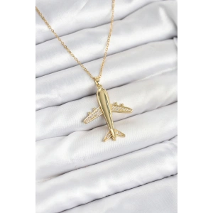 316L Çelik Zincir Gold Renk Uçak Model Kadın Kolye