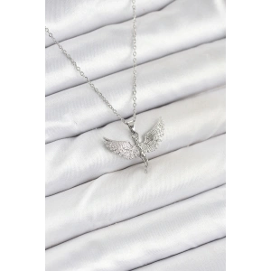 316L Çelik Zincir Gümüş Renk Melek Model Kadın Kolye