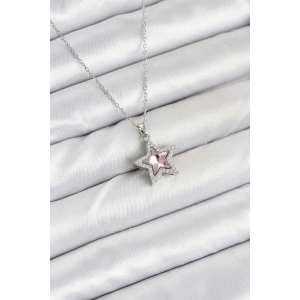 316L Çelik Zincir Gümüş Renk Pembe Taşlı Yıldız Model Kadın Kolye