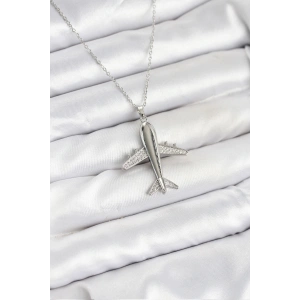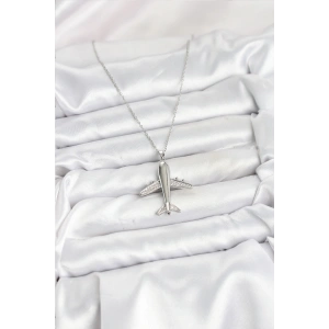 316L Çelik Zincir Gümüş Renk Uçak Model Kadın Kolye