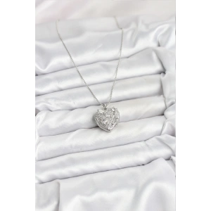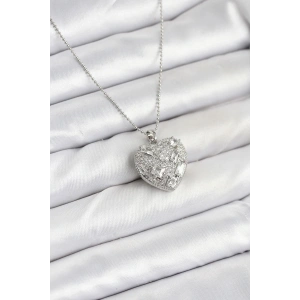316L Çelik Zincir Gümüş Zirkon Taşlı Kalpli Kadın Kolye