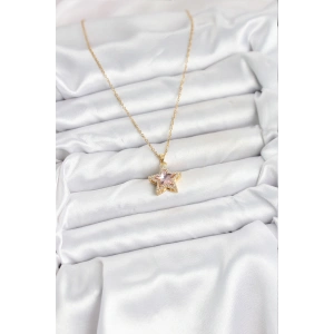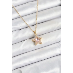 316L Çelik Zincir Pembe Taşlı Yıldız Model Kadın Kolye