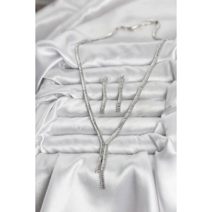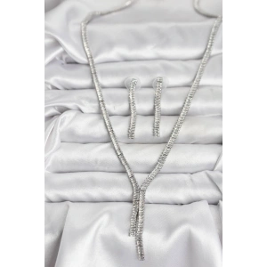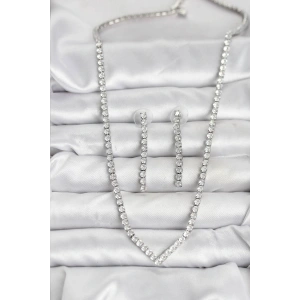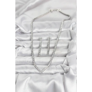 Gümüş Renk Zirkon Taşlı Kadın Kolye Küpe Seti