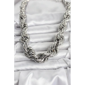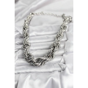 Pirinç Gümüş Renk Sarmal Halat Model Kadın Kolye