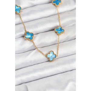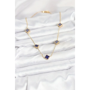 316L Çelik Zincir Gold Renk Lacivert Yonca Kadın Kolye