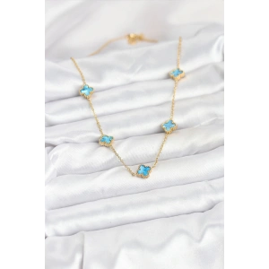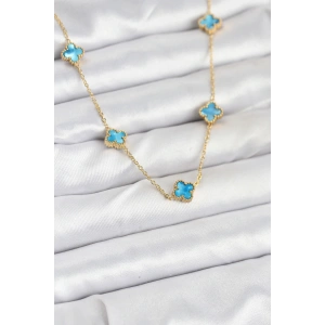316L Çelik Zincir Gold Renk Buz Mavisi Baby Boy Yonca Kadın Kolye