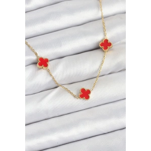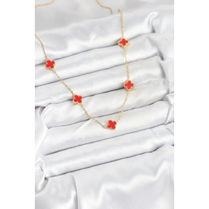 316L Çelik Zincir Gold Renk Kırmızı Baby Boy Yonca Kadın Kolye