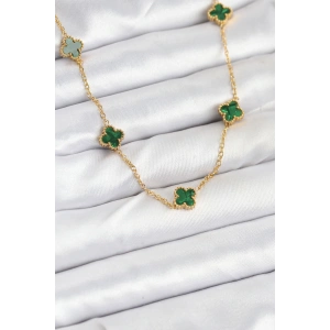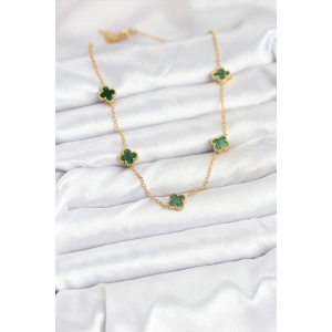 316L Çelik Zincir Gold Renk Yeşil Baby Boy Yonca Kadın Kolye