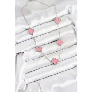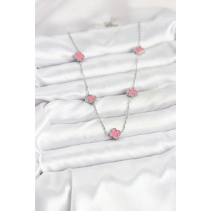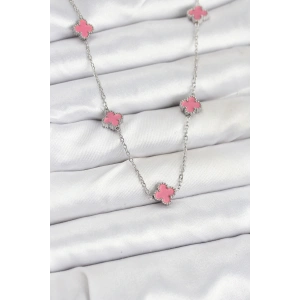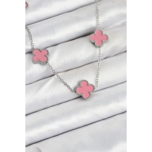 316L Çelik Zincir Gümüş Pembe Renk Yonca Kadın Kolye
