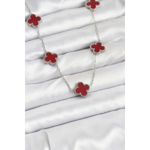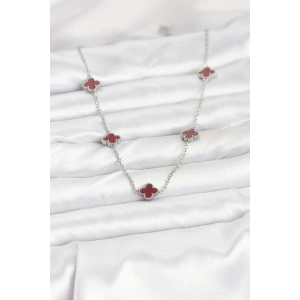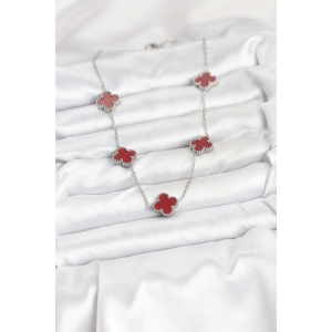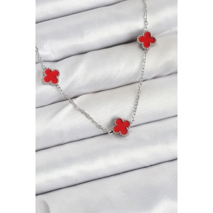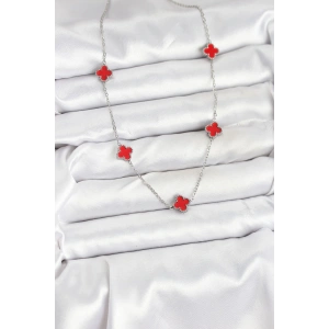 316L Çelik Zincir Gümüş Renk Kırmızı Baby Boy Yonca Kadın Kolye