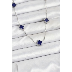 316L Çelik Zincir Gümüş Renk Lacivert Baby Boy Yonca Kadın Kolye