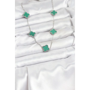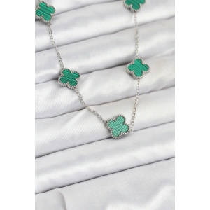 316L Çelik Zincir Gümüş Renk Yeşil Baby Boy Yonca Kadın Kolye