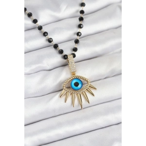 316L Çelik Zincir Kristal Boncuklu Göz Model Kadın Kolye