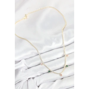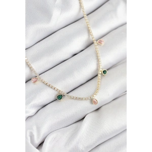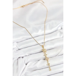 Pirinç Zirkon Taşlı Su Yolu Asorti Çiçek Model Gold Renk Kadın Kolye
