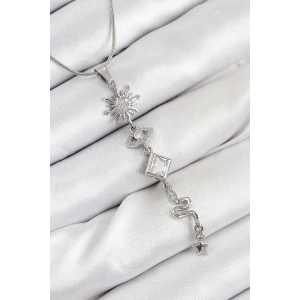 316L Çelik Zirkon Taşlı Güneş Ve Ay Enerji Model Gümüş Renk Kadın Kolye