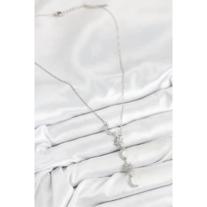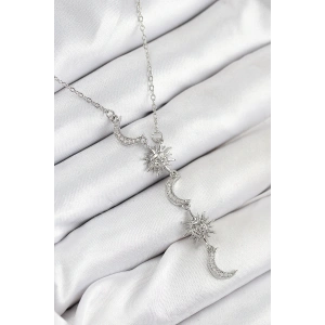 316L Çelik Zirkon Taşlı Güneş Ve Ay Model Gümüş Renk Kadın Kolye