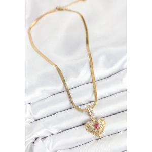 316L Çelik Zirkon Taşlı Kanatlı Kalp Model Gold Renk Kadın Kolye