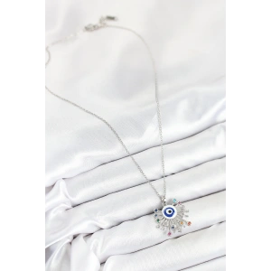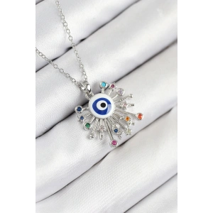 316L Çelik Zirkon Taşlı Nazar Model Gümüş Renk Kadın Kolye