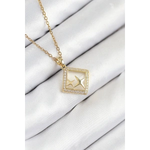 316L Çelik Zirkon Taşlı Yıldız Model Gold Renk Kadın Kolye