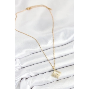 316L Çelik Zirkon Taşlı Kalp Model Gold Renk Kadın Kolye