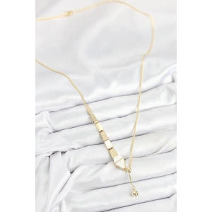 Pirinç Zirkon Taşlı Su Yolu Damla Model Gold Renk Kadın Kolye