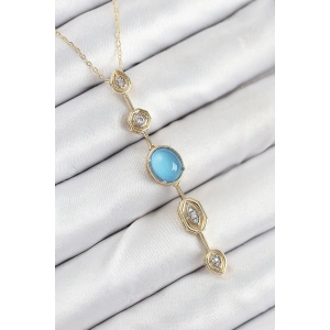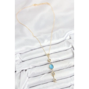 Pirinç Zincir Mavi Gold Renk Zirkon Taşlı Y Kolye