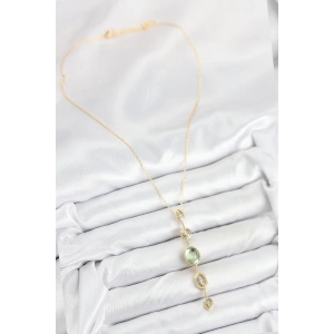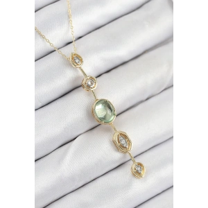 Pirinç Zincir Yeşil Gold Renk Zirkon Taşlı Y Kolye