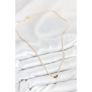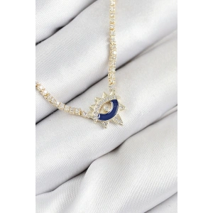 316L Çelik Zirkon Taşlı Nazar Model Gold Renk Kadın Kolye