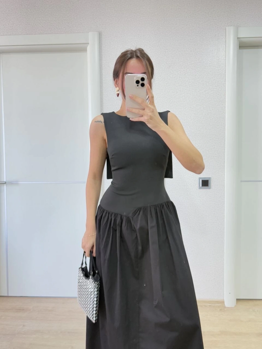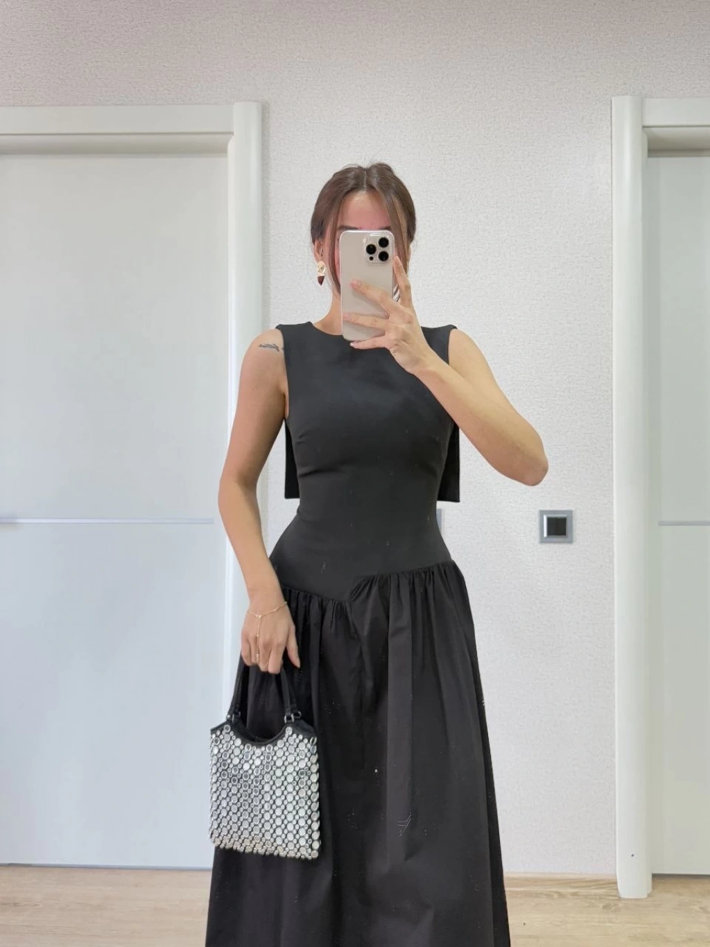 Straplez Pileli Elbise - Siyah