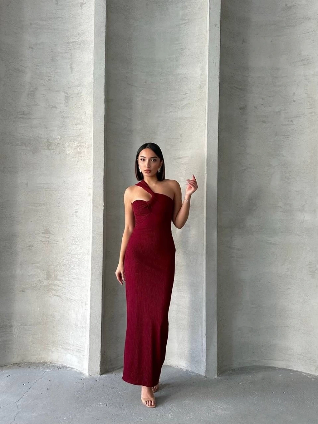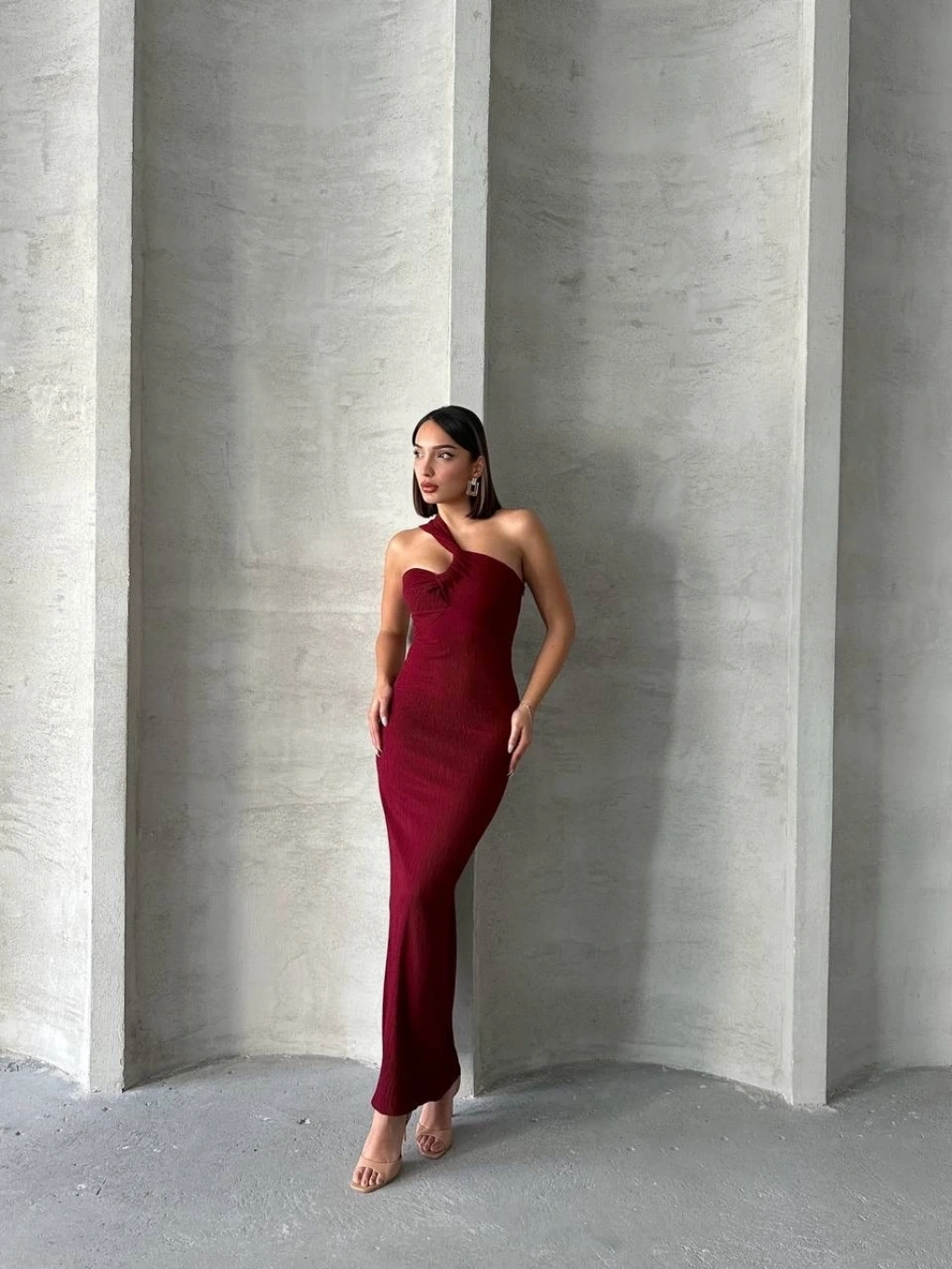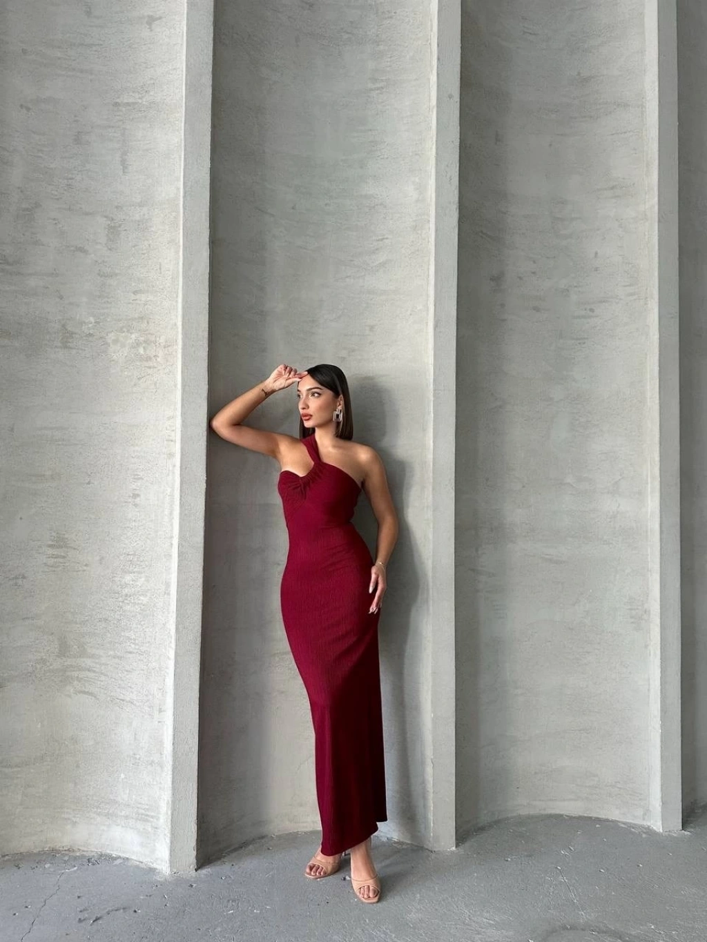 Fermuar detaylı fitilli şardonlu elbise bej a3178