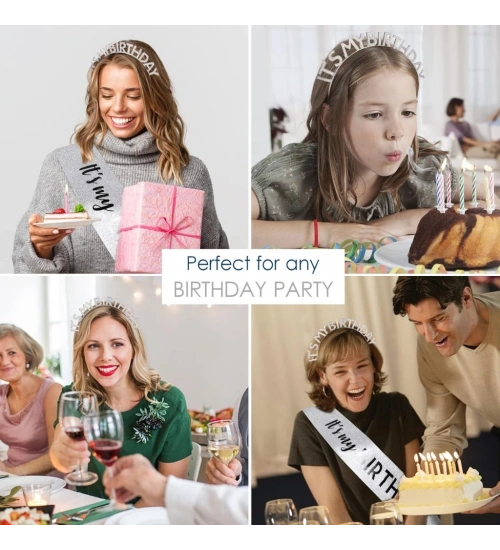 Kristal Taşlı Gümüş Renk İt's My Birthday Yazılı Doğum Günü Parti Tacı 14x16 cm