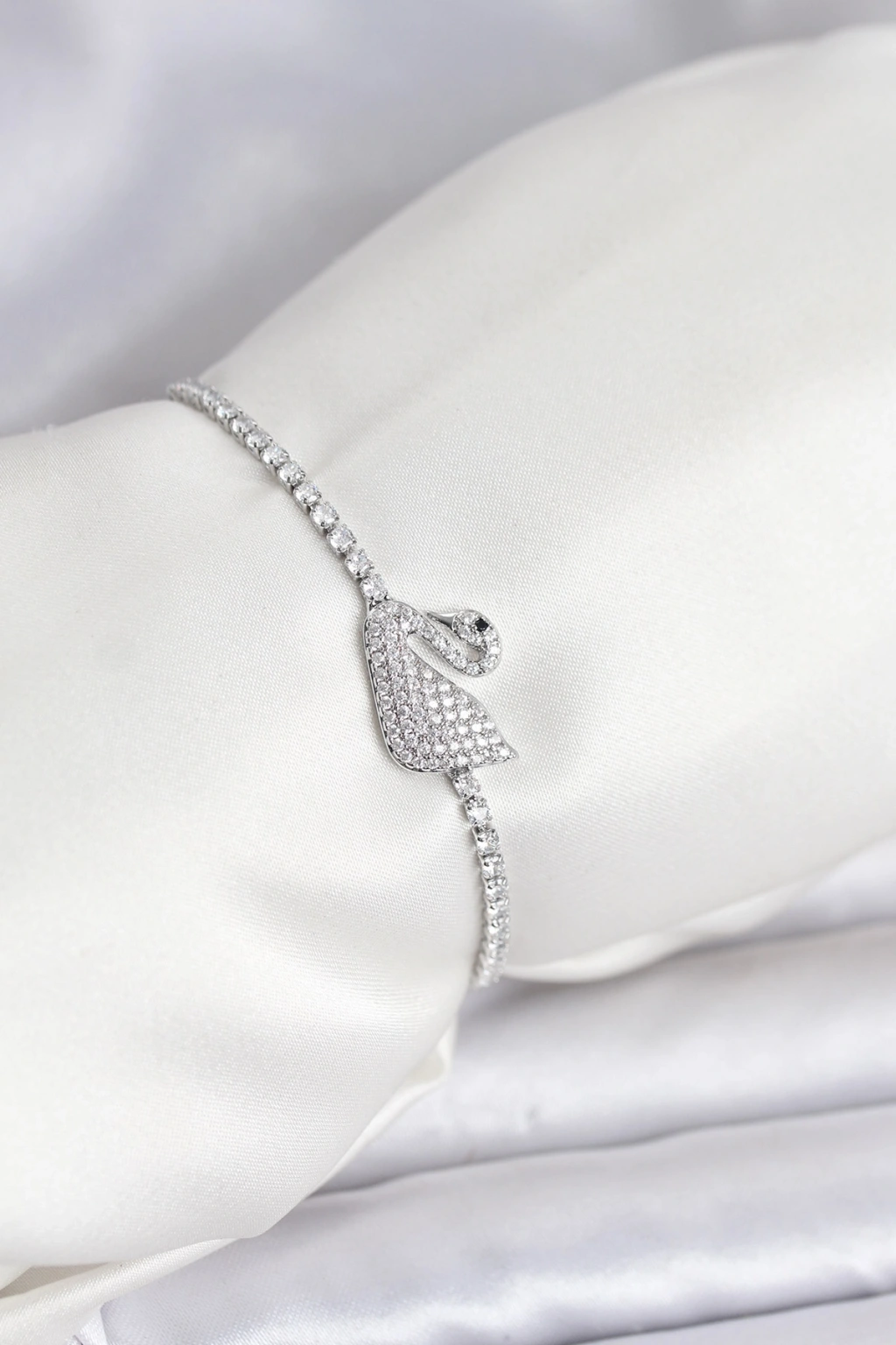 Kuğu Model Zirkon Taşlı Gümüş Renk Asansörlü Su Yolu Bileklik