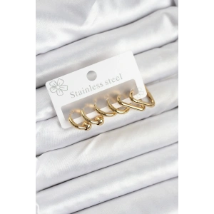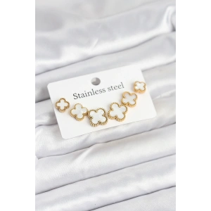 316L Çelik Gold Beyaz Renk 3 Boy Yonca Küpe Seti