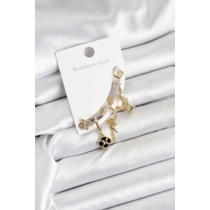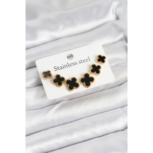 316L Çelik Gold Siyah Renk 3 Boy Yonca Küpe Seti