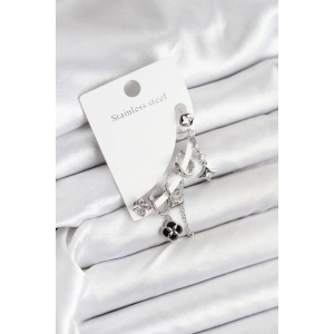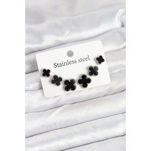 316L Çelik Gümüş Siyah Renk 3 Boy Yonca Küpe Seti