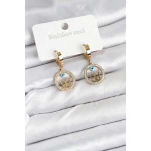 316L Çelik Nazarlı Yonca Model Kadın Küpe