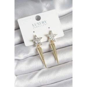 Pirinç Gold Renk Zirkon Taşlı Yıldız Model Çivi Kadın Küpe