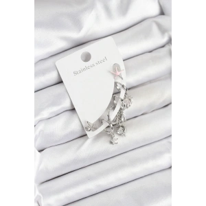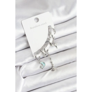 Pirinç Gümüş Renk Ay Model Kadın Set Küpe