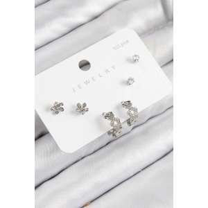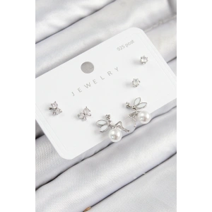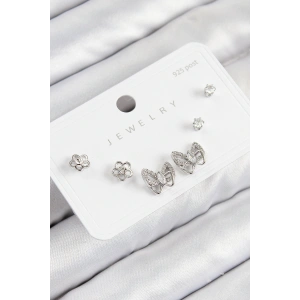 Pirinç Zirkon Taşlı Kelebek Model Gümüş Renk 925 Ayar Gümüş Çivi Kadın Küpe Set