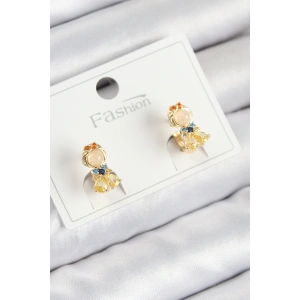 Pirinç Zirkon Taşlı Pamuk Prenses Model Gold Renk Çocuk Küpe