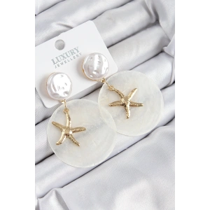 Pirinç İncili Deniz Kabuğu Figürlü Sedef Model Gold Renk Kadın Küpe