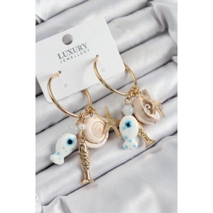 Pirinç Sallantılı Seramik Balık Ve Deniz Kabuğu Model Gold Renk Kadın Küpe