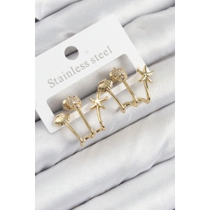 Pirinç Zirkon Taşlı Deniz Yıldızı ve İstiridye Model Gold Renk Kadın Küpe