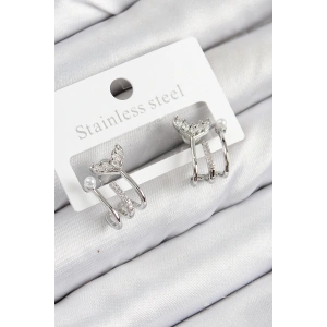 Pirinç Zirkon Taşlı Kıvrımlı Model Gümüş Renk Kadın Küpe