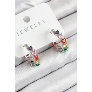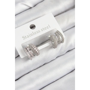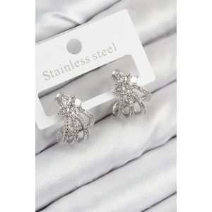 Pirinç Zirkon Taşlı Model Gümüş Renk Kadın Küpe
