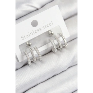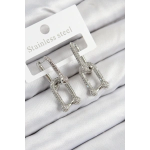 Pirinç Sallantılı Zirkon Taşlı Model Gümüş Renk Kadın Küpe