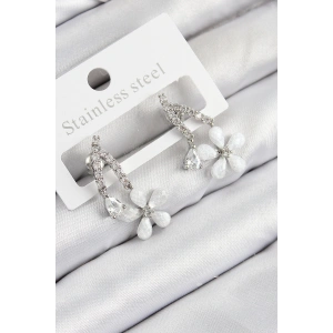 Pirinç Zirkon Taşlı Papatya Model Gümüş Renk Kadın Küpe