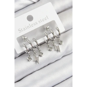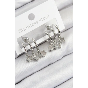 Pirinç Zirkon Taşlı Sallantılı Yıldız Model Gümüş Renk Kadın Küpe