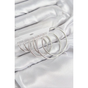 Pirinç Halka Model Gümüş Renk Kadın Set Küpe